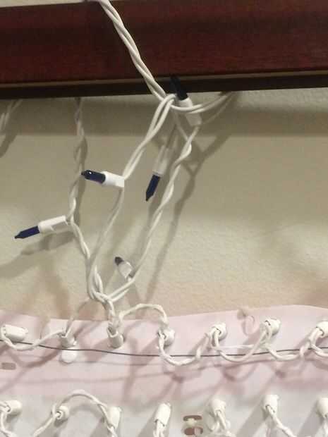- Una vez que determina su posición, coge un extremo de las luces de Navidad, debe tener un fin que está cayendo y encaje por la parte posterior de su detestable luces.