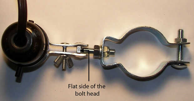 [Pic3] Este es el montaje final conectado a la luz. Como se puede ver señalar Dónde está la parte plana del perno . Los planos (la parte puntiaguda) de la cabeza del perno deben ser debe estar tocando el soporte que sujeta la luz. He probado ambas maneras y esto pareció funcionar mejor.