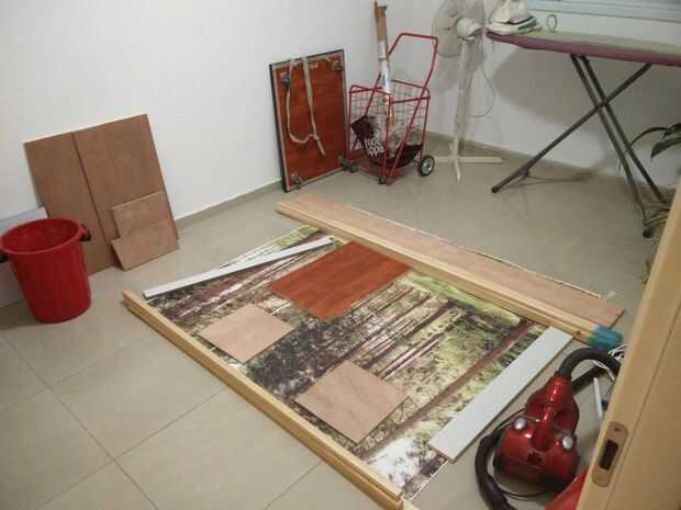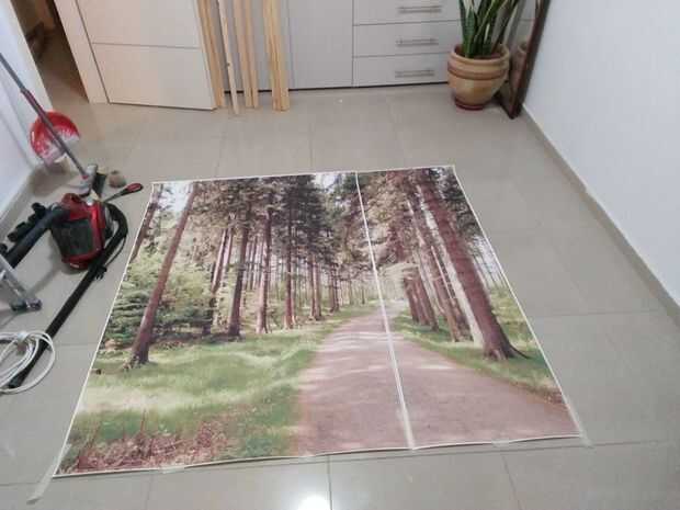 Primero, se debe difundir la imagen de la lona en el suelo, aplicar alguna presión en él mediante libros, o placas de madera en orden para sea recta (desde que llegó en este tubo redondo),- y déjalo así durante un día o dos