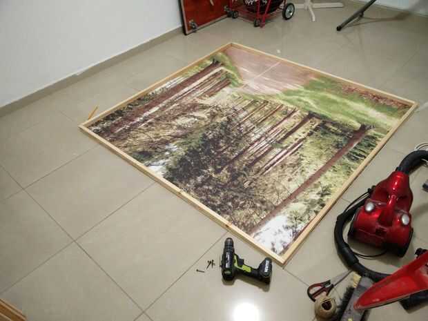 Quería hacer un marco para mi arte sin necesidad de utilizar vidrio. Así que usando algunos restos de madera, papel de lija, epoxi, tornillos e imanes que hice mi propio! Al final tienes una pieza libre flotante de arte sostenido firmemente entre dos