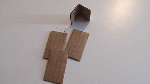 de una vieja caja de cartón cortar 4 pequeñas piezas + - 40mm x 20 mm y el pliegue en el centro