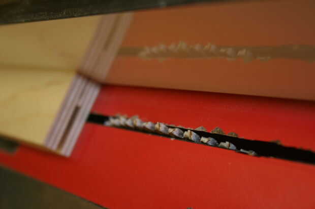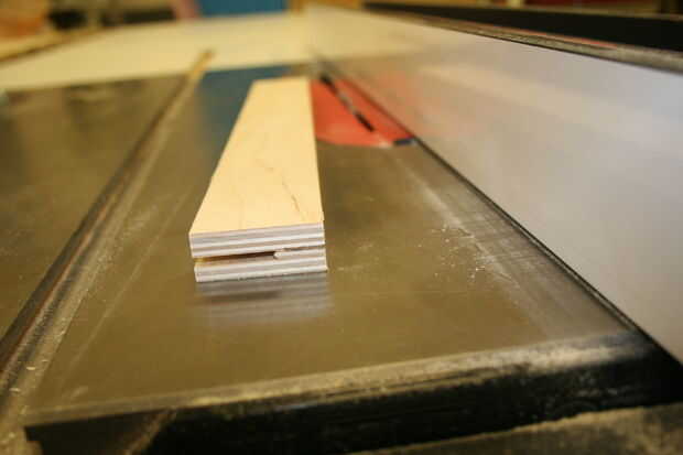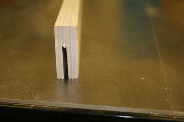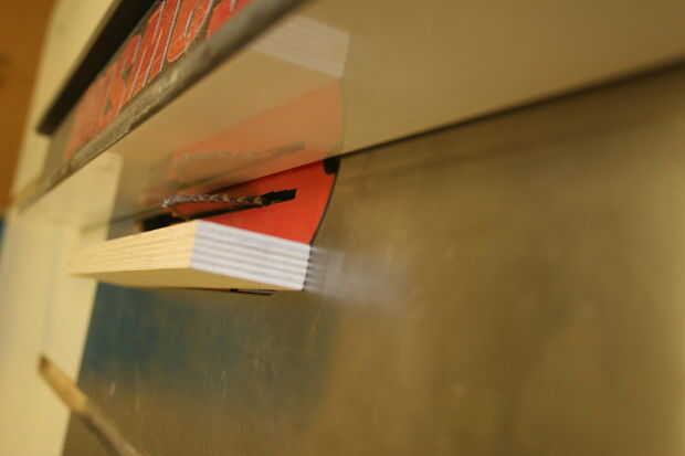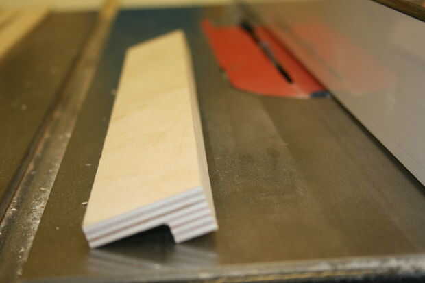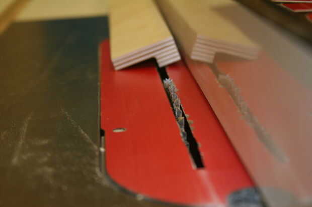 A continuación sacó la cuchilla separadora y levantó la hoja a los cerca de 1 pulgadas de alto. Estribo vertical a través de la hoja haciendo un conejo cortar, repetir con todos los cuatro tableros. Si no se siente cómodo corriendo sus manos sobre la hoja puede utilizar un palo de empujar. Pero usar una varilla de empuje que tiene una mayor superficie. Como se ve en la foto de arriba.