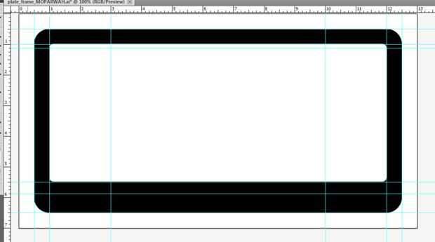 Construir otro rectángulo redondeado, esta vez con anchura de 11 pulgadas, altura de 4-1/2 pulgadas y un radio de 1/8 de pulgada. Arrastre este muelle con las guías de 1 pulgada x 1 pulgada. Con este rectángulo seleccionado, haga clic en objeto > organizar > traer al frente. A continuación, seleccione objeto > trazado > dividir objetos debajo. Seleccione una vez más este rectángulo interior y elimínelo. Usted debe dejar con una forma de marco con una media que falta.