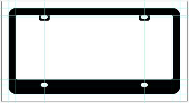 Con la herramienta de selección activa, seleccionar el marco, haga clic en objeto > organizar > Enviar a espalda. Seleccione el orificio del tornillo alargado redondeado rectángulos, haga clic en objeto > trazado > dividir objetos debajo. Seleccione otra vez ese rectángulo redondeado y elimínelo. Repita para los tres agujeros restantes y debe tener la forma de su estructura completa.