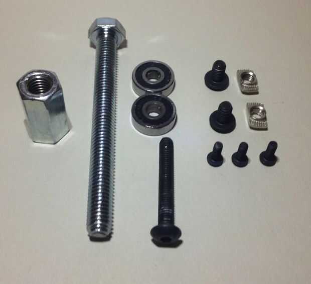 En las fotos; todas las piezas impresas 3d están presentes. Hay 2 diferentes piezas de sujeción laterales (tipo threded y tipo de trampa la tuerca) y 2 partes de base diferentes (20mm de anchura y 15mm de ancho por extrustions de aluminio diferentes).
