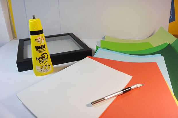 1. color tarjeta papel stock mínimo 220 gr (> 110 lb), A4 tamaño o más grandes. Necesitarás 5 diferentes tonos de verde, 2 diferentes tonos de azul, dos tonos diferentes de amarillo y uno rojo.