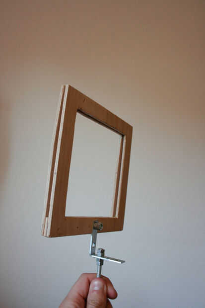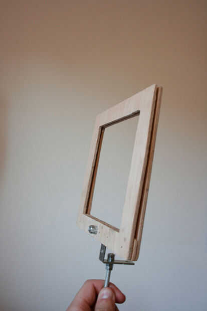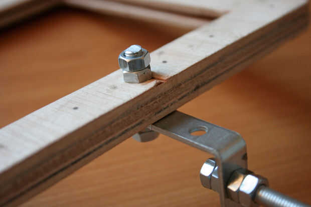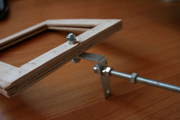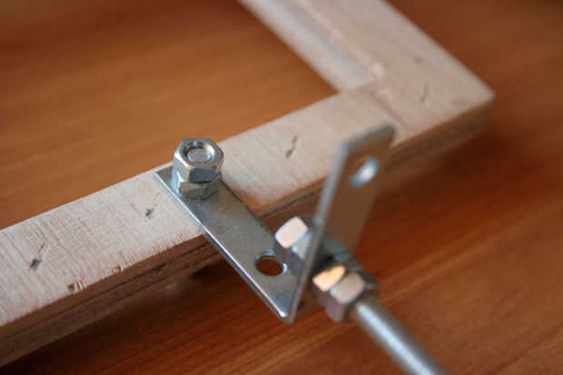 Conecte el alambre del hierro con el gancho en el bastidor preparado en el paso 6. Además, asegúrese de está conectado correctamente causa no desea que el marco para girar. Simplemente use un tornillo con algunos tornillos.