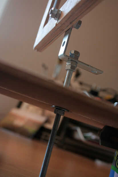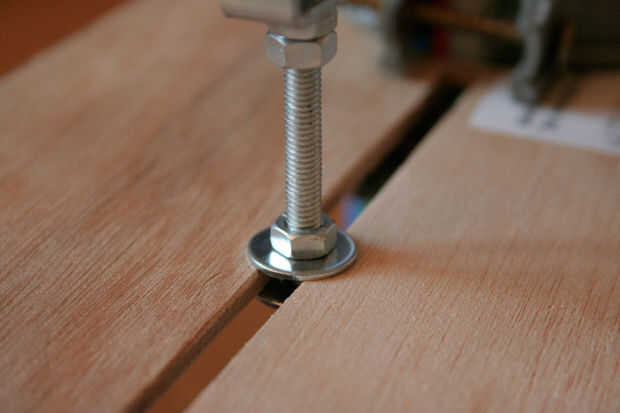 Que tomar el alambre del hierro con el gancho y el palillo a través del corte/corte de la madera. Utilice un tornillo en la parte superior e inferior para el alambre del hierro del secore.