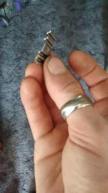 Aquí otra foto es de un clip de"Goofy" como yo los llamo. Nunca recuerdo su nombre real, que creo que es corrugados clips comunes. Que podía estar equivocado. El objetivo es no sólo la madera y unir la articulación, pero también tienen un bisel en las formas. El lado de la lámina es más ancho que la parte de atrás. Esto aspirará las dos piezas de madera juntos más más es martillado en la madera.
