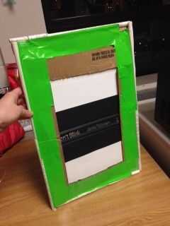 8) para cubrir el cartón, pintar la parte posterior del marco con cualquier color usted desea. Recomiendo usar pintura acrílica. Para mi proyecto, usé cinta adhesiva para cubrir el cartón. Si desea, puede dejar expuesto así de cartón.