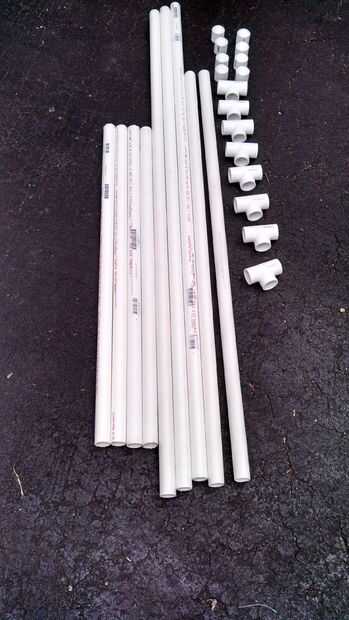 Tomar de su 6' longitudes de PVC y corte hasta 3' secciones. Terminarás con cuatro 3' secciones como se muestra en la imagen