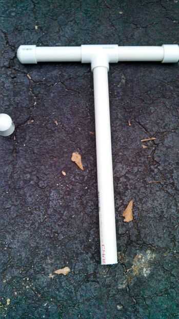 Este paso necesitará realizarse cuatro veces. Conecte un conector en T a un lado de la sección 18" como se muestra. Inserte 6" secciones en cada uno de los lados restantes del conector en T. Agregar tapas al extremo expuesto de las secciones de 6".