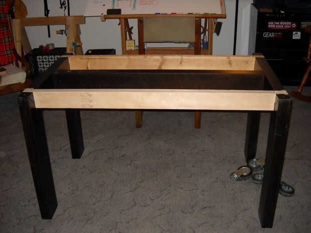 OK - perdonar mi falta de cuadros preliminares y tratar de imaginar estas fotos sin dejar el dos 2 X 4 en el cuadro inicial. Algunos amigos míos se casaron, manchado de la parte superior de vidrio inmenso a este marco de roble de 2 X 6 aproximadamente rompió en definitiva orden luego. Sólo así se estaban empezando a tener hijos y quería una mesa de tipo más familiar (menos frágil, no de vidrio). Preguntaron si quería el marco o si sólo debe lanzar lejos. Claramente, la primera fue la mejor elección.