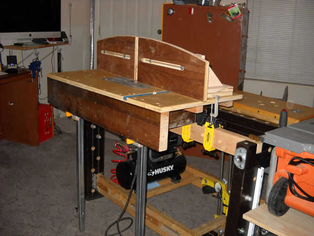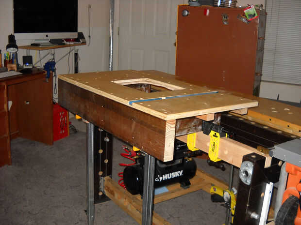 Mejor banco del (o marco como me gusta llamarlo porque el Banco pueden quitarse las tapas, reemplazar todo el negativo de la estructura espacial) lleva a cabo el trabajo, mejor usted puede concentrarse en hacer real el trabajo. Esto lleva a otro punto crucial - hacer su banco de ajuste usted!!!!!! Confiar en alguien con un grado en Ciencias del ejercicio en este caso por favor! La calidad de su trabajo se resentirá si no estás cómodo y estable haciendo el trabajo. Para herramienta de mano (herramientas de mano real - planos, cinceles serruchos, etc.) el trabajo, levantarse con los brazos hacia abajo y extender sus manos tal que las Palmas se enfrentan a la tierra. La altura de las palmas es la altura apropiada de su bancada. Si usted no me cree, intente utilizar una garlopa con los hombros todos se encogió de hombros, los codos demasiado flexionada y hasta en las piernas rectas, tratando de llevar hacia abajo en la pieza de trabajo y me dicen lo que funciona para usted. Sierra circular, Hanon y el trabajo de rompecabezas son a esta altura también. Si haces un gran trabajo del router, puede que desee elevar sus tapas del Banco un poco por lo que no está inclinado sobre demasiado. también se podría añadir un accesorio de mesa router de pie como se ve en las fotos... ahora lo baje de mi caja de jabón en el cuerpo al posicionamiento en lo que se refiere al trabajo de banco.