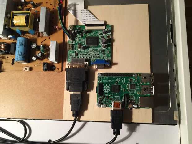 Coloque la placa de madera (o placas) sobre el Panel LCD y pegar la madera en su lugar. La madera se separa las placas PCB desde el panel. Pegue el poder y la PCB de la lógica en la madera.