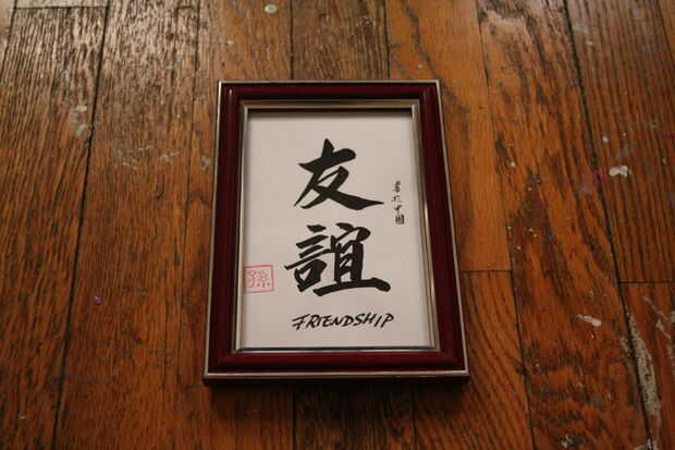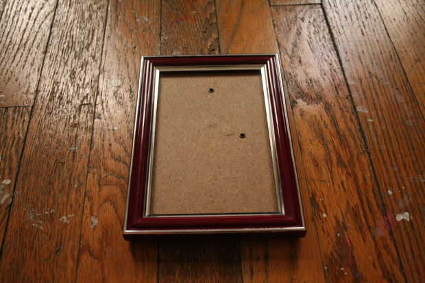 Sacar cuidadosamente el vaso y añadir una copia del símbolo chino de su elección. Puede recortar los lados de su copia para caber dentro de la estructura. Mi marco es de 4 x 6 y la copia de mi símbolo chino es 5 x 7, así que tuve que recortar una pulgada en ambos lados. Mi sugerencia: tomar el respaldo y utilizar como guía para el seguimiento en ambos lados, luego recortar el mismo tamaño que el marco.