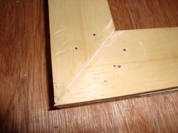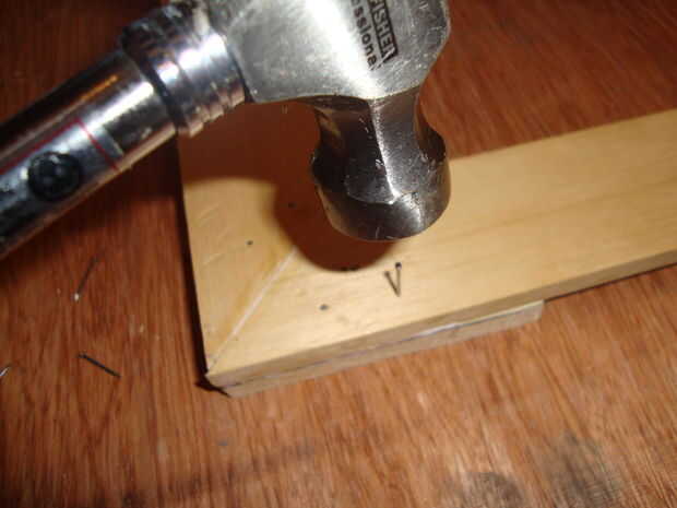 Asegurándose de que está satisfecho en su esquina pone un número de clavos en él para garantizar adecuadamente.