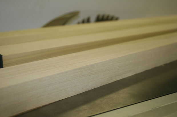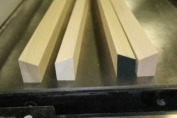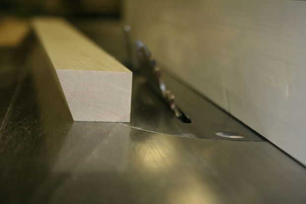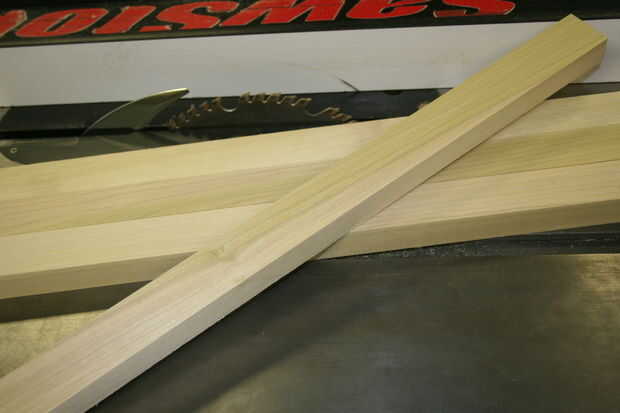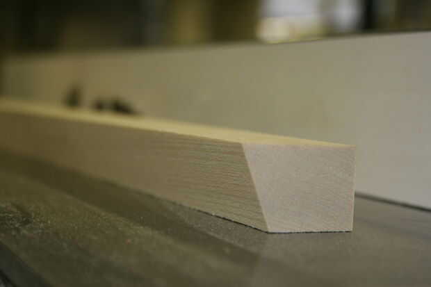 La madera que usé fue 2.5 x2.5 pulgadas; no tienes que hacer las tablas de este tamaño. Pero no haría el grueso de cualquier de menos de 1 pulgada de espesor. A partir de la Sierra de mesa, mueva el ángulo de la hoja a unos 23 grados, ejecutar cada uno de la Junta a través de la Sierra de mesa. Tendrá forma de trapecio. Usted quiere cortar la Junta en el ángulo para que la lona no sentarse en la madera. Si tienes el lienzo situado en la madera la pintura se sumerja en la madera.