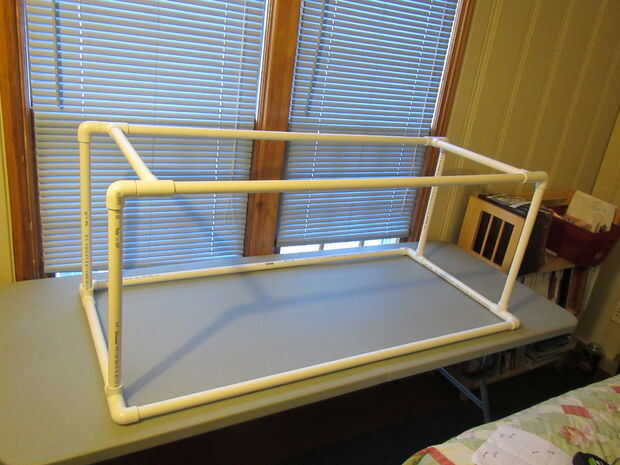Después de montar cada codo una PVC de 18" pieza, entonces Únete a las piezas de PVC con las conexiones"T"en la parte inferior del marco.