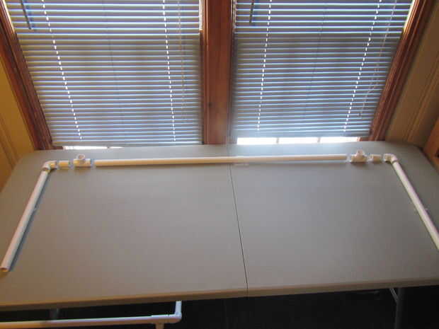 Tomar cada una 43" PVC piezas y montar una" T "conexión en cada extremo de los tubos.