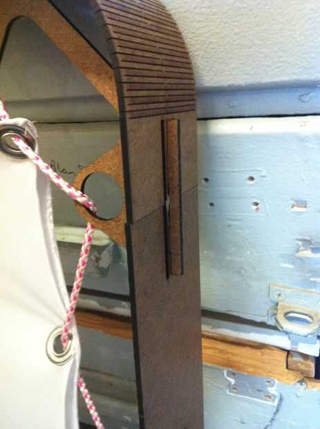 Tejió la cuerda a través de cada ojal, de ojal a lazo en el marco y en el ojal de la siguiente. Siempre desde la parte inferior y tirado por la parte superior. Consistencia aquí hará el marco mejor. Después de lo que es a través de todos los agujeros y volver al punto de partida, me tiró de la cuerda y estirar a la tela. Luego uniformar el espacio y había atado la cuerda fuera.