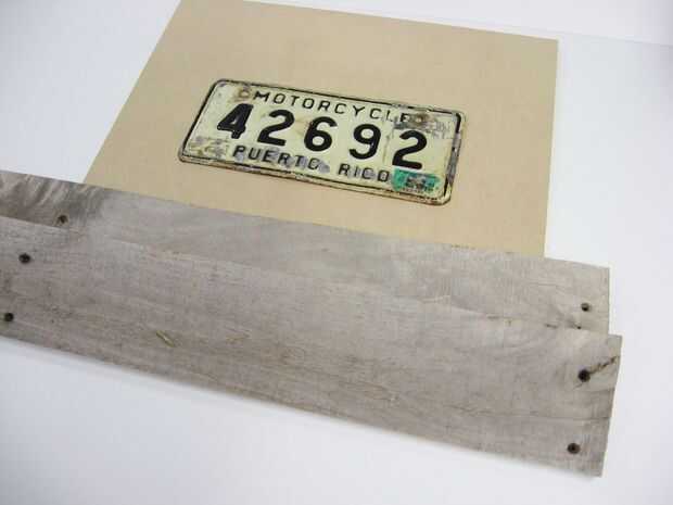 Usted necesitará un par de listones de plataforma (o cualquier otra madera, realmente). Decidí utilizar algunos listones de plataforma vieja áspera porque pensé que serían complementar la placa muy bien.