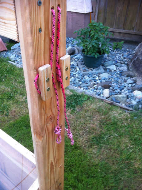 Perfore agujeros en el centro inferior o los marcos de la ventana (como se muestra) para que cable para enrosque y hacer un pequeño tirón del lazo, un nudo en la parte trasera, luego atropellar una longitud del cable hasta un agujero en la barra horizontal de entonces y a través de otro agujero en la vertical del poste. Hecho algunos listones de madera como se muestra, un poco de corte y cincelado y tornillo con 2 tornillos cada grapa. Sólo Levante la ventana con el lazo y ate el cordón en la Cala por lo que puede regar, si sol brillante dejo la ventana del centro abierto para que no se consigue más caliente. El marco se encuentra hacia el sur para la mayoría de luz del sol, he usado este marco frío poner tomates, pepino, calabaza, pimiento, brócoli, lechuga, girasoles y espinacas. También se podría utilizar la derecha en el jardín en filas en las frías noches. Funcionó bien para mí, buena suerte!