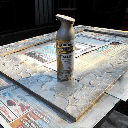 Yo también rociar el mismo marco con dos capas de Rust-Oleum especialidad metalizado oro - mucho mejor y sin duda un efecto mucho más brillante.