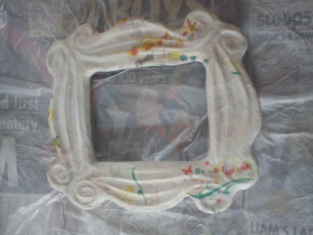 Luego papel maché todo, hacer tantas capas como creas que necesita. Lo hice cerca de 2 y un medio capas, asegúrese de que no pierdes la forma y las ranuras del marco.