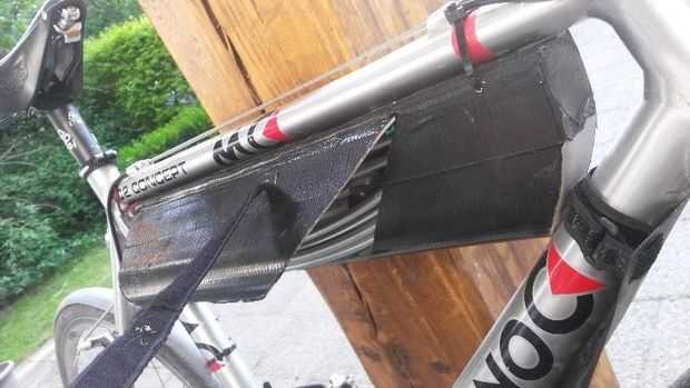 Perfore agujeros en el paquete que se puede colgar con zipties para el tubo de la bicicleta (también puede usar velcro).