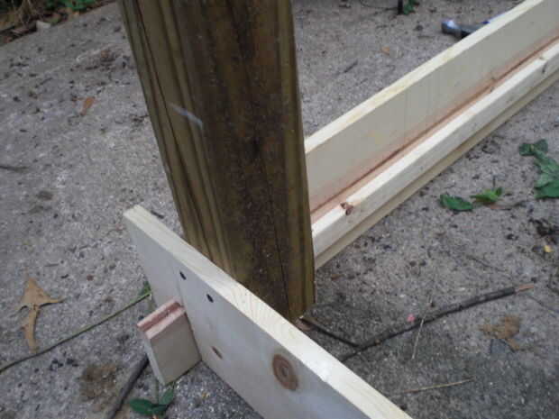 Montar el cuadro y dale la vuelta para que usted pueda encontrar donde montar las piernas. Aunque se unirá al final, van a quedar contra los soportes del listón que acaba de agregar.