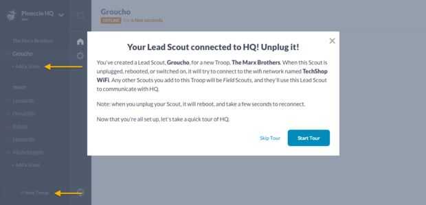 Una vez uno está instalado, haga clic en "Añadir un Scout" en nombre de la tropa en la barra lateral izquierda y siga los pasos para completar.