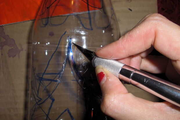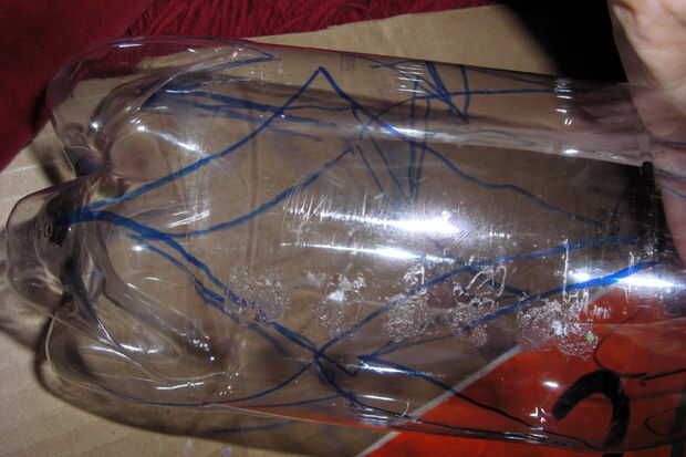 ligero y respetuosos vasos hechos de botellas de plástico vacías.Paso 1: Marcar la botella Tomar la hoja de afeitar y marca donde quiere cortar. Poco sangrado alrededor de la circunferencia.Lo sentimos, la imagen resultó para ser boca abajo.Paso 2: C