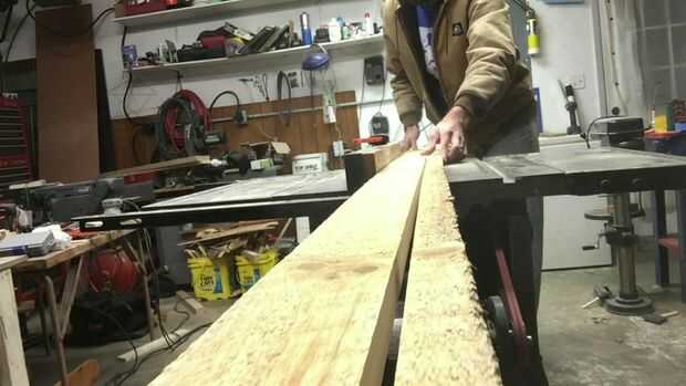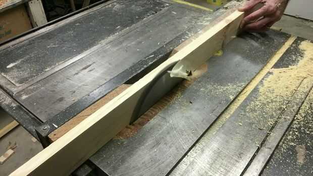 De todos modos, de nuevo a este proyecto. Tuve este pino bruto corte en mi galpón. Algunos de los bordes eran un poco suaves, así que los corte con la Sierra de mesa. Entonces levanté la hoja de la sierra tan alta como iría utilizado como una ensambladora improvisada para quitar la cara áspera de corte de la Junta Directiva. Tomé unos pases muy delgados, a menudo de afeitar apagado un poco de madera de los puntos altos.