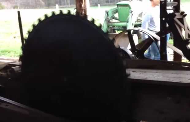 Empecé con 10' pedazo largo de 5/4 pino bruto corte grueso que un buen amigo cortó en su turno de la serrería de siglo. Esta máquina es increíble, aunque un poco peligroso. Tiene un monstruoso 52" de diámetro y es conducido a través de una correa larga plana de 60 pies por uno de sus tractores. Tomé un video de esta cosa en acción. Si quieres verlo, haga clic aquí.