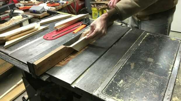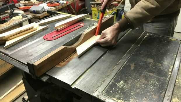 Puse mi cerca de Sierra de mesa por lo que es 1/4" desde el lado opuesto de la hoja. Configurar la altura de la hoja a 1/4". Coloqué el marco para que la parte posterior de la pieza fue contra la valla y un cortado. Luego puse la pieza en la superficie de la sierra con el interior borde (corta a inglete) contra la valla y otro cortado. El resultado es un rebajo de 1/4 "x 1/4". Repetí esto para todos los pasos.