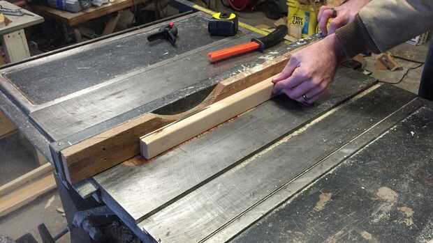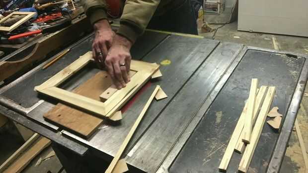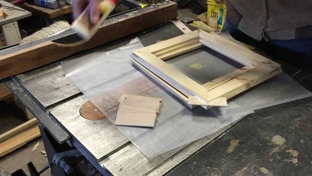 El material utilizado para las estrías suele ser de color contrastante. Esto es puramente estético. Sólo arrancó tiras de algún abeto dimensional madera (también conocido como 2 x 4). Las ranuras fueron luego pegadas en el marco.