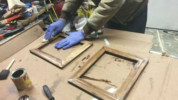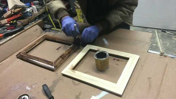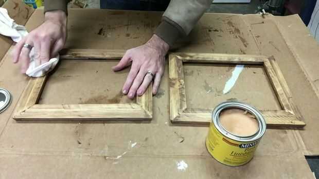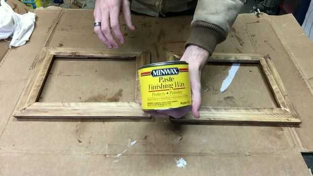 Decidí usar algunas manchas que había sobrado de otro proyecto. Es una mancha de gel oscuro (color castaño). Simplemente aplica con un pincel de espuma, esperó el especificado 3 minutos y limpiar. Me deje que la mancha se seque y luego aplica dos capas de cera en pasta color natural. Yo pulir la cera hacia abajo con la mano.