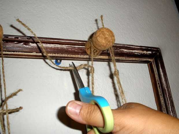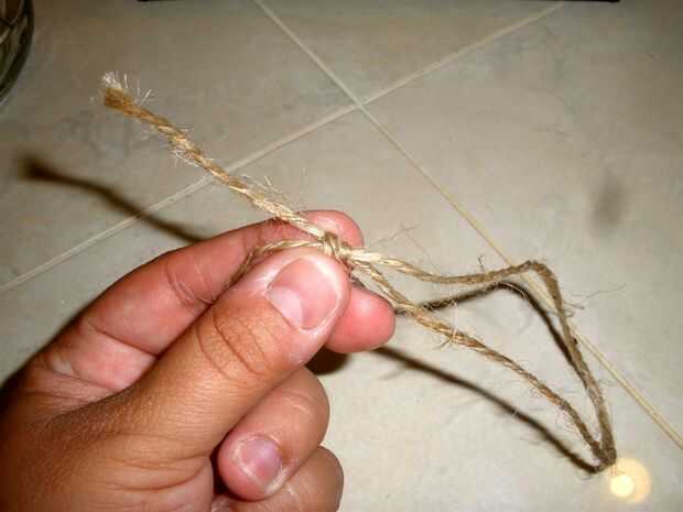 Envuelve el yute la jarra tres veces totales, pasando por los lazos cada vez el cable pasa a su alrededor.