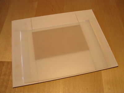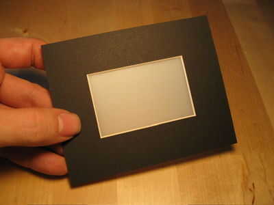 Voltee su estera tablero marco (o equivalente) por lo que usted está buscando en la "espalda". Si está usando una pieza rígida de plástico como la pantalla, coloque un borde de modo que queda cerca de un borde ancho de la estructura (como en la imagen); se trata de la "base" del bastidor, y la batería necesita algo sólido para unir a. Si usted está usando velo, colocarlo más alto para que tanto de la parte inferior se expone el borde del marco (cuando use el velo, tienes que colocar la batería directamente en el panel).