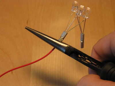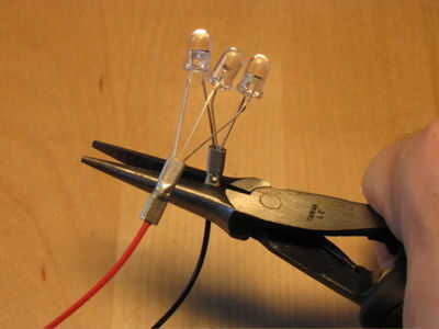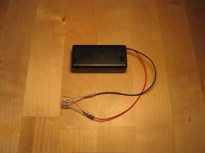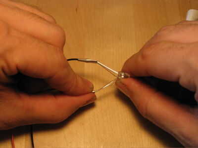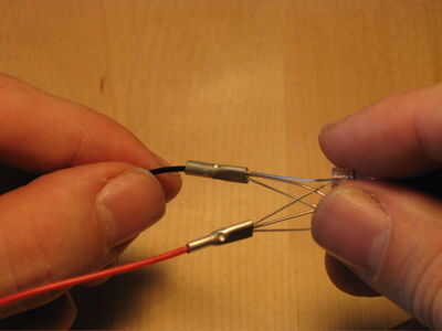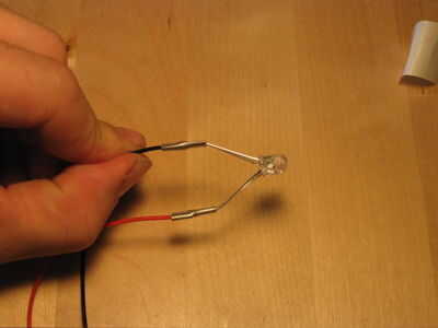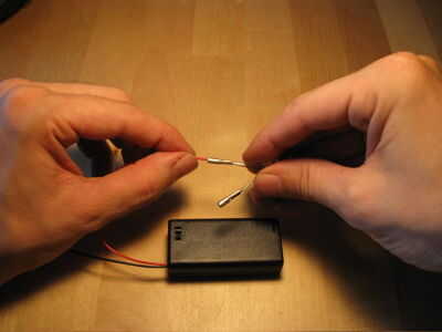 Ahora suavemente doblar los cables en cada empalme, por lo que parece en la foto. Es muy importante que los dos empalmes nunca toque, si lo hacen y que le impiden su arte LED iluminación vaciar rápidamente la batería.