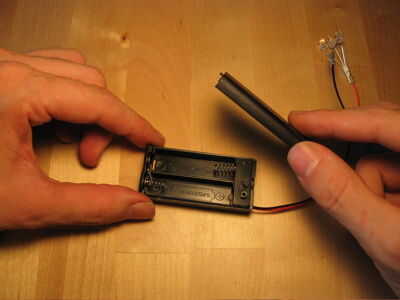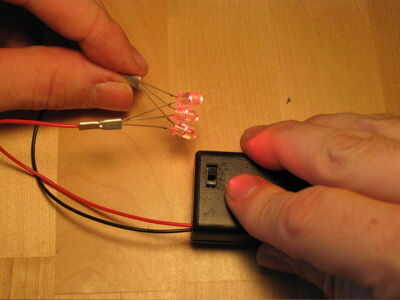 Si ninguno de los LEDs se encienden, usted puede han invertido todos los LEDs (es decir, conectado el cable rojo donde debe estar el cable negro, y viceversa). En lugar de tirar o cortan los empalmes, ponerse las pilas en el soporte al revés.