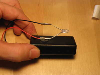 Ahora presione firmemente uno de los empalmes encrespados (no importa cual) contra el punto de pegamento.