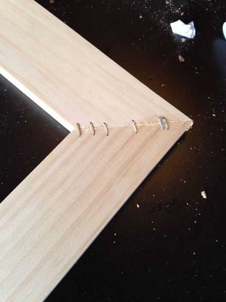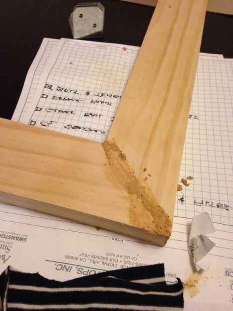 Después de que el pegamento se seca entonces su tiempo para llenar los huecos en las esquinas con masilla para madera.