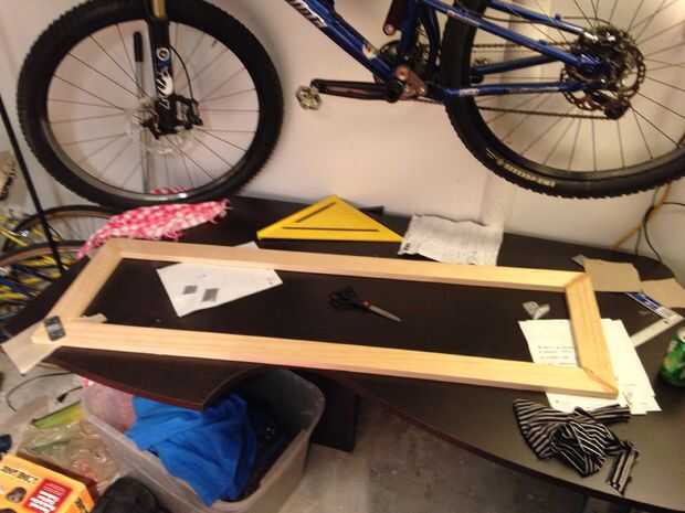 Luego apilados unos artículos pesados cerca de las esquinas para compensar mi falta de abrazaderas.