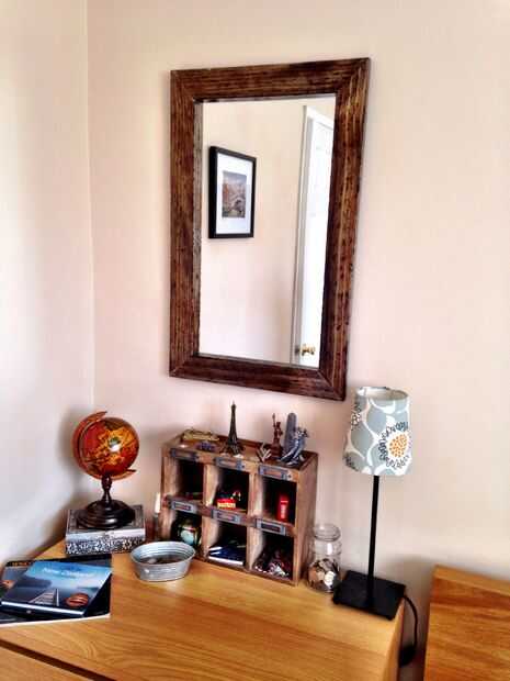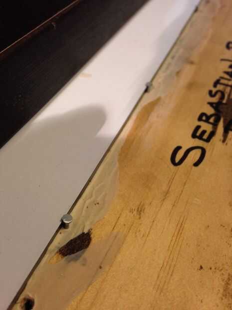 Martillado en unos pequeños clavos a lo largo de la parte inferior por si acaso. Yo sólo martillado les hasta que estaban ya cerca el espejo como sea posible sin realmente tocarlo, no quiere el riesgo de saltar el borde