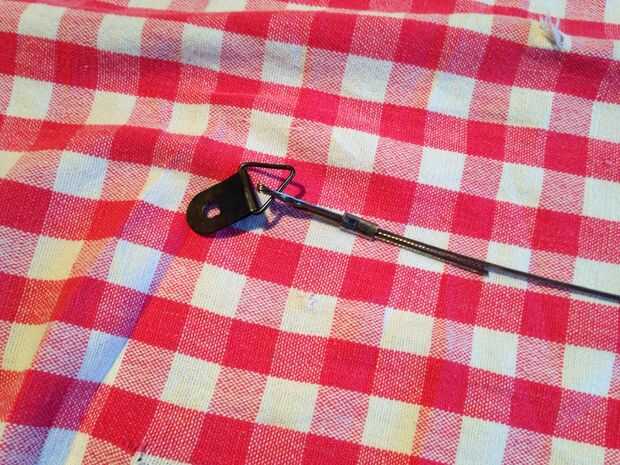 Luego encontró algunos ganchos de montaje y cable de freno de bicicleta y descubrió una manera de hacer un alambre colgante.