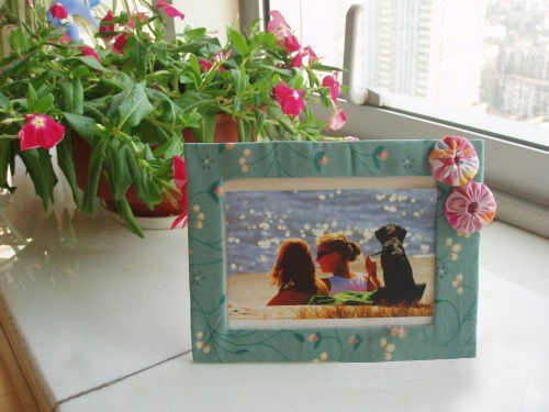 Marcos hacer foto de la tela, usted puede preparar su tela preferida al principio. En mis ojos, tela floral es la mejor opción. Y dos flores de tela en una esquina del marco. Esta es la descripción general de marcos de fotos de bricolaje. A continuación vamos a entrar en detalles.