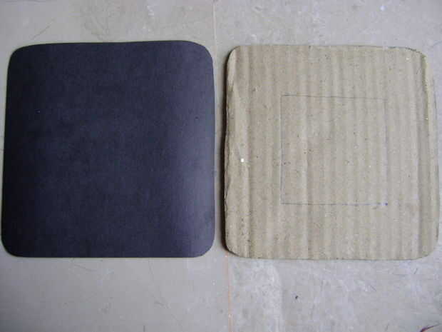 Tomar un corte de cartón y traza sólo la plaza exterior de hoja de la tarjeta de negro con lápiz.