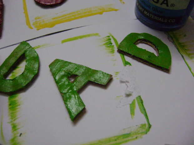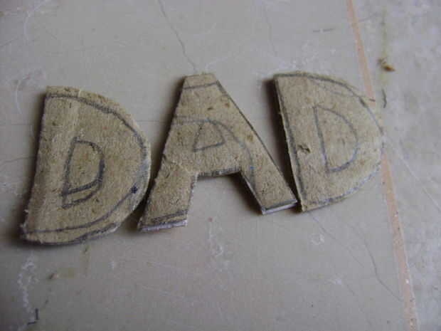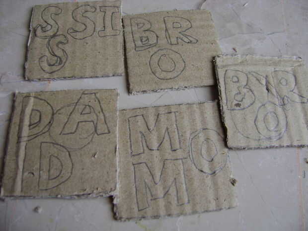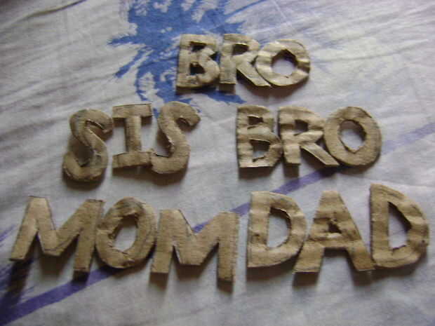 Otra vez usar cartón para hacer la etiqueta para sus marcos (aquí son papá, mamá, BRO, BRO, SIS)